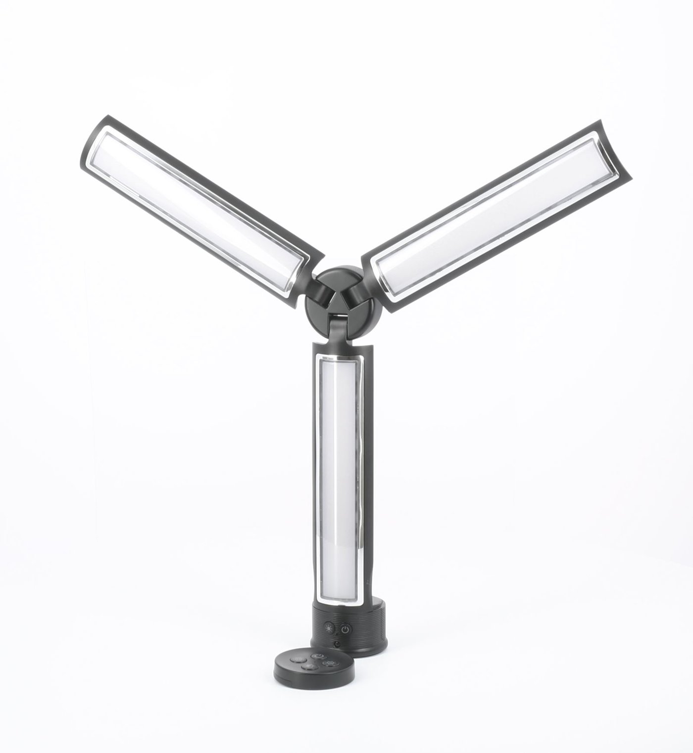 Lyssett dine foto- og videoproduksjoner med en kompakt og allsidig LED-lampe. Lett å ta med og rask å folde ut – for å få bedre lys under dårlige lysforhold. Har 3 sterke LED-lys som også kan vinkles. Juster lysstyrke og fargetemperatur med den praktiske fjernkontrollen, som oppbevares under selve lampen. Kan plasseres på en plan overflate eller festes på ønsket kamerastativ som har gjenge på 1/4". Batteritid på 8 timer. Lades via USB-C (USB-lader og kabel selges separat).