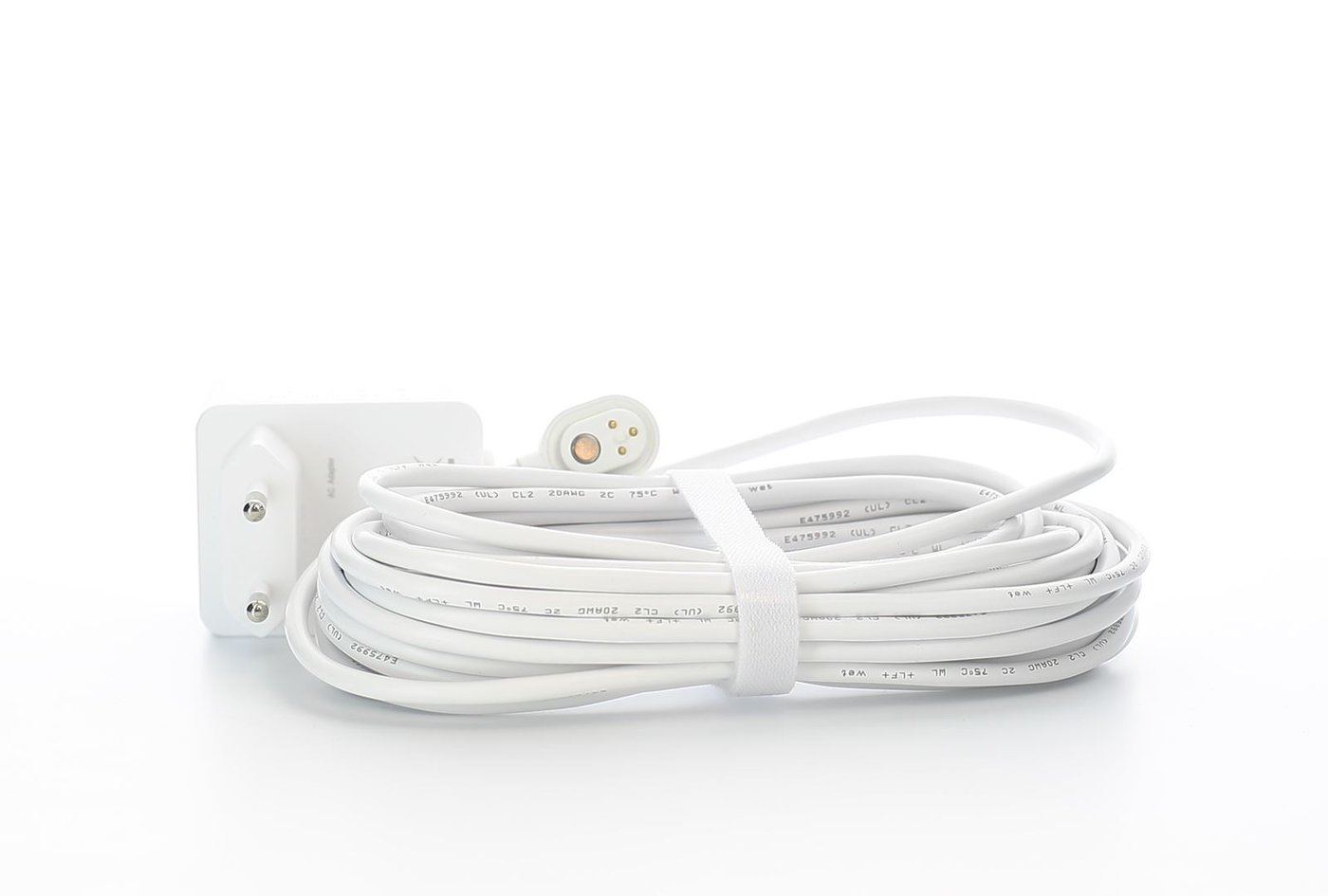 Værbestandig kabel med magnetisk kontakt og strømadapter for kameraet Pro 3, Pro 3 Floodlight, Pro 4,/XL, Pro 5, Arlo Ultra, Arlo Ultra 2/XL og Go2. Holder batteriet oppladet og gir mulighet for innspilling døgnet rundt (betalingsplan kreves). Tilpasset for utendørsbruk. Kabellengde: 7,6 m.