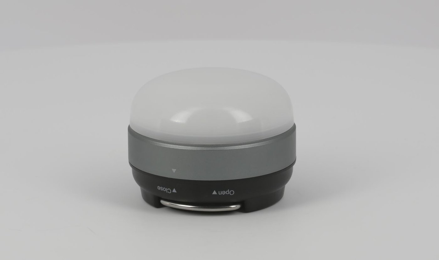 Mini-campinglampe som passer perfekt til telt eller campingvogn. Kompakt format som gjør at den får plass overalt, også i jakkelomma. To lysstyrker og SOS-funksjon. Innebygd krok og magnet. Batteritid på opptil 12 t med 3x AAA-batterier (kjøpes separat). Lysstyrke: 150/75 lm. Mål: Ø68x50 mm. Vekt: 135 g (med batterier).