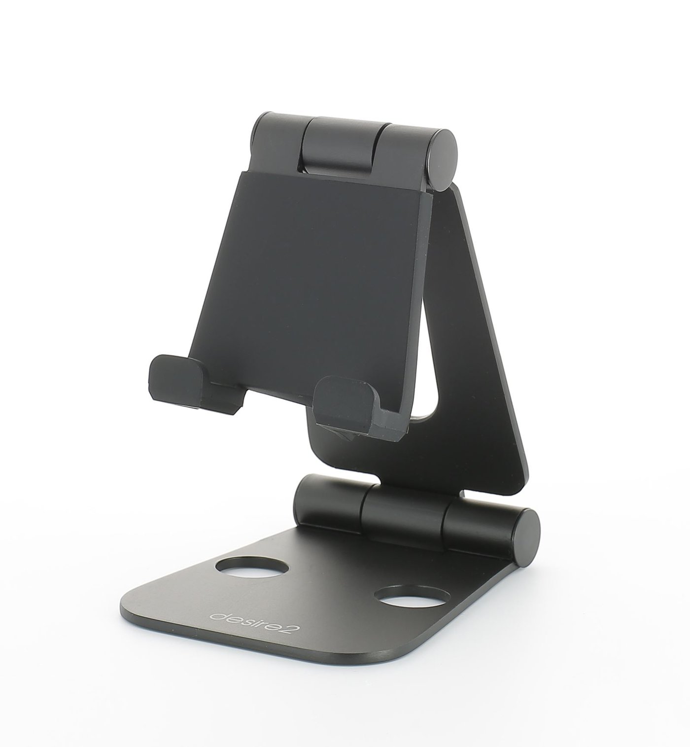 Stativ i aluminium med to ledd som kan vinkles 270°. Bunnen og holderen har silikonoverflate som sikrer at stativet står stabilt. Selve holderen og stativet har også åpninger, slik at du skal kunne lade enheten. Stativet kan foldes sammen og er enkelt å ta med. Passer mobiler og nettbrett mellom 4 og 10 tommer samt Nintendo Switch.