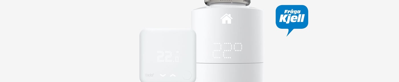 Tado har ett startpaket med en termostat och bryggan för att få allt du behöver för att komma igång. Komplettera sedan med fler termostater för att bygga ut på fler radiatorer.