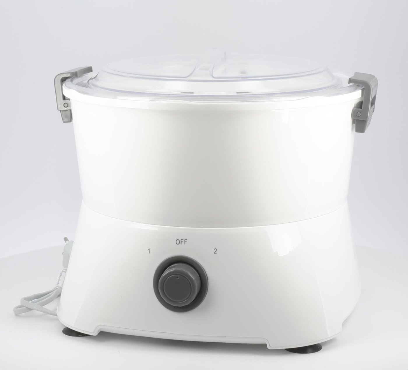 En tyst potatisskalare med ett transparent lock och säkerhetsspärr. Avsedd för potatis men kan lika bra skala allt från grönsaker till frukter med mjukt skal. Aldrig förr har potatisskalning varit så enkelt, på cirka 3 minuter är potatisarna färdigskalade. Används utan vatten. Potatisskalaren är utrustad med reglage med två hastigheter och en motor på 85W. Mått: 279 x 283 x 236 mm