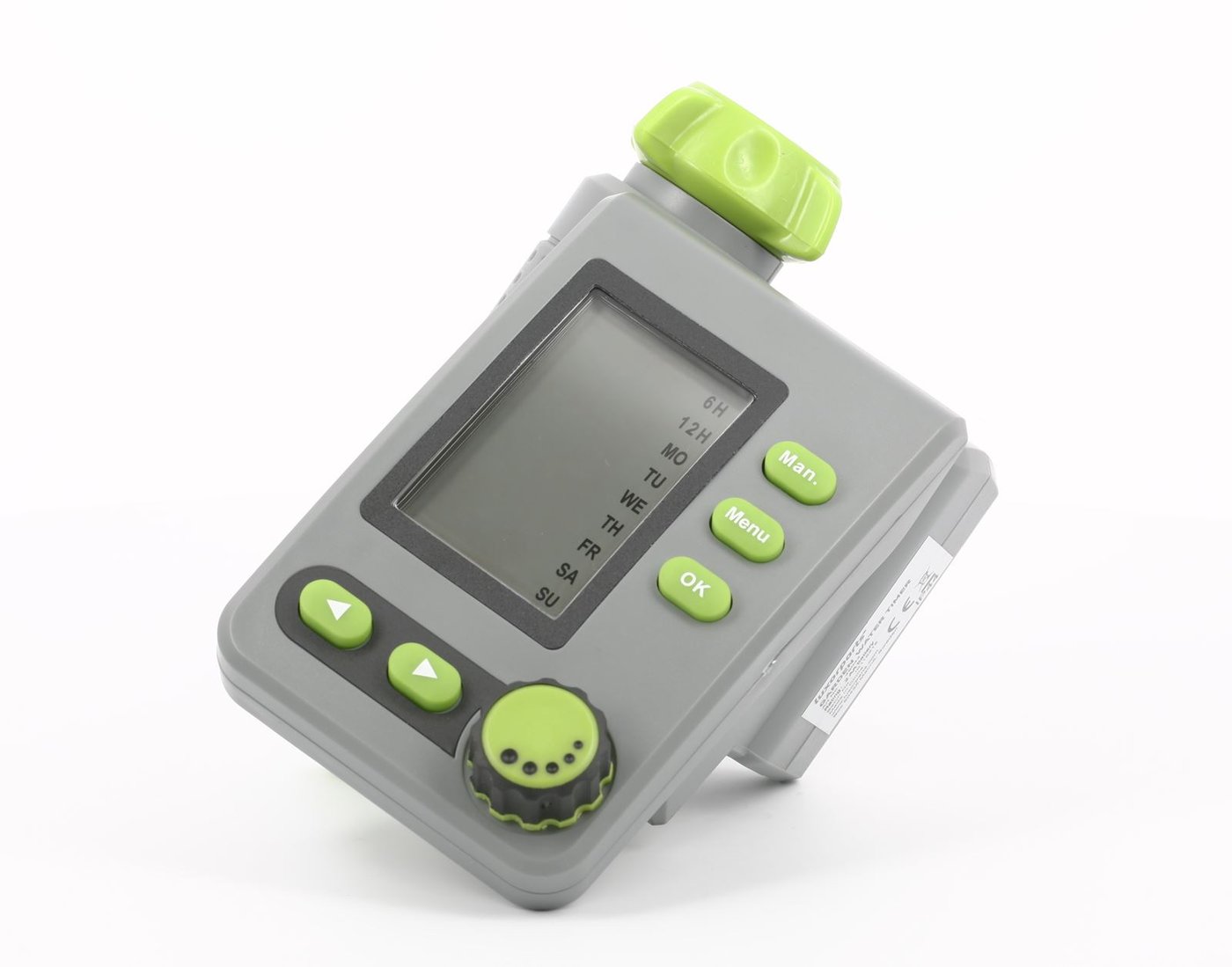 Bevattningslängd kan ställas in från 1 minut till 4 timmar. Bevattningsintervaller kan ställas in till var sjätte eller tolfte timme eller specifika veckodagar. Vattning kan även startas manuellt. För vattentryck mellan 0,5-8 bar. Ansluts med 3/4”-gänga. Drivs av 2x AA-batterier (säljs separat). IP-klass: IP44.